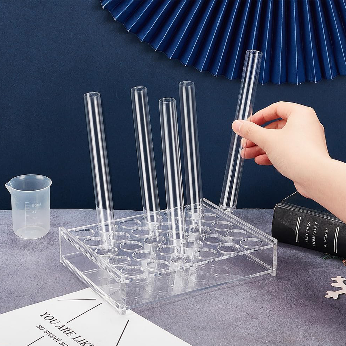 Este soporte de tubos de ensayo acrílico transparente ofrece una solución práctica y elegante para la organización de tus tubos de ensayo. Con 30 enchufes, proporciona un amplio espacio para mantener tus tubos de ensayo seguros y ordenados.
